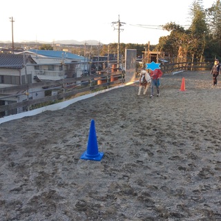 クネクネコースはコーンとコーンの間が若干狭いので、行き先を上手に伝えないとちびまるの大きなお腹がコーンにぶつかってしまいます。