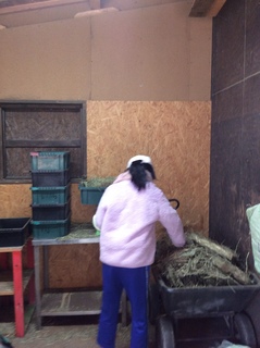 馬房掃除は二人一組で行ったので、汚れてるよ、出来たよなどなどコミュニケーションを取りながらお掃除していました。