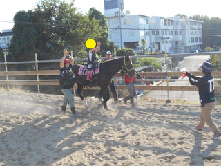 馬はサーバントスターでした。音楽のリズムに合わせながら手を叩くことを意識すると、どうしても乗馬の姿勢や視点への意識が薄くなります。複数の動作を同時にこなせるようになることが目標です。みんな笑顔で取り組むことができましたね。少しづつ慣れていきましょう。