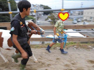 さて今日の活動は引き馬です。