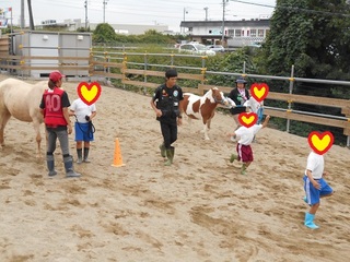 お子さんもちびまるときなこと一緒に遊びながら触れ合うことができて何度も何度も友だちと交代しながら楽しんでいました。遊びを取り入れた引き馬もいつもと違って新鮮でしたね!