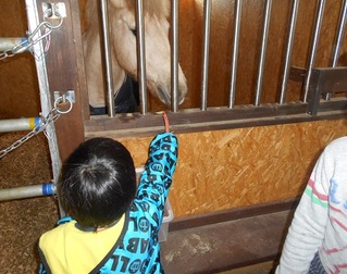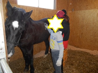 お知らせ馬のブラッシングとエサやり